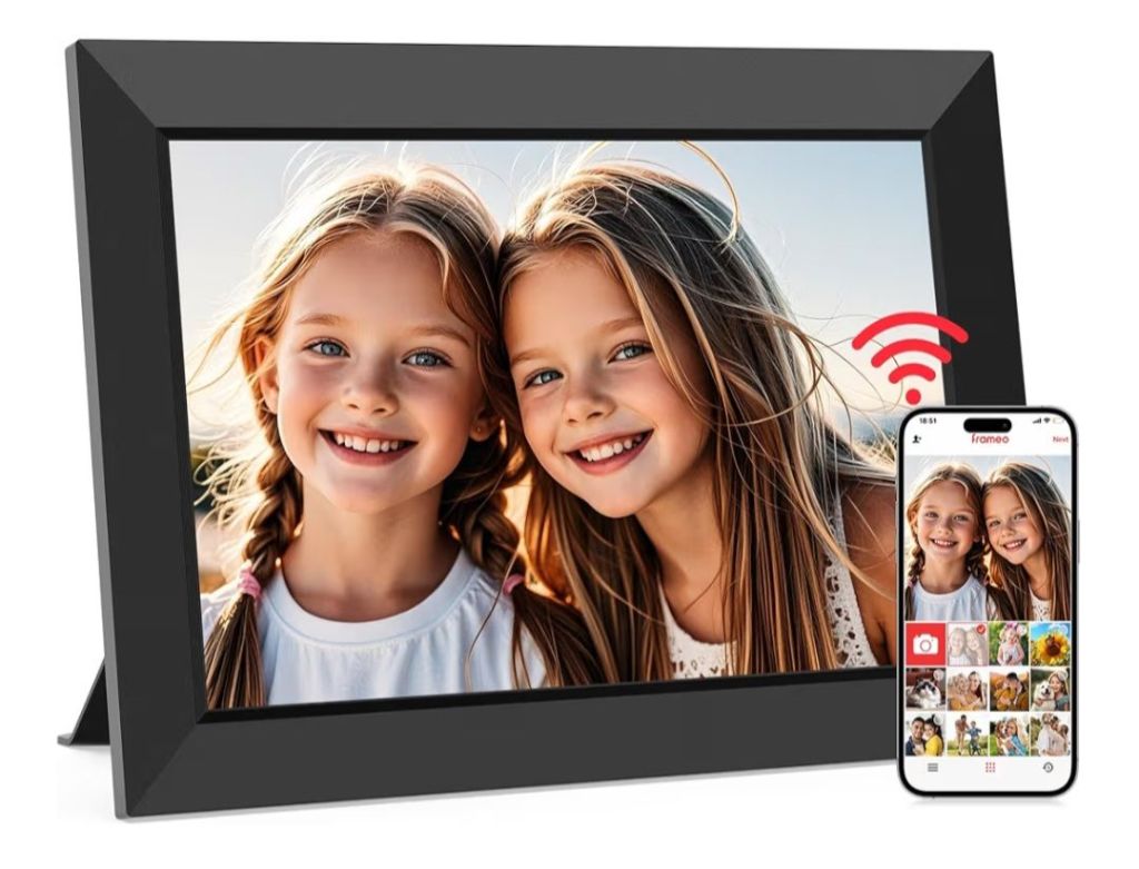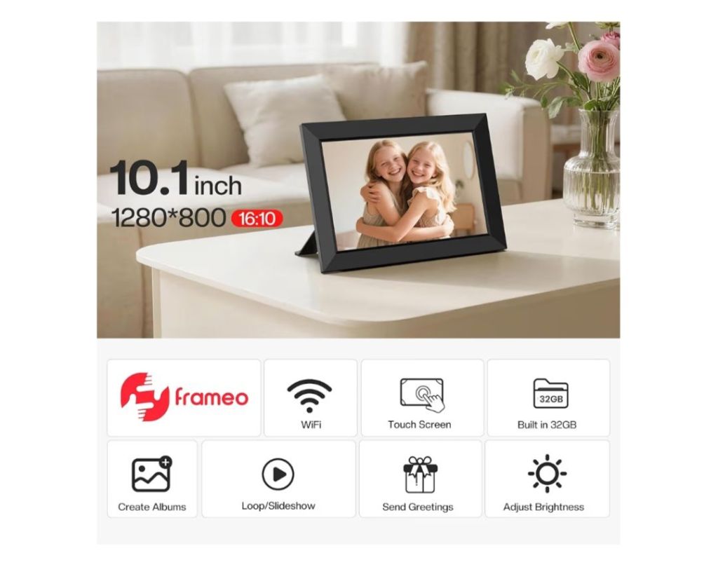 Frameo 10.1 Inch WiFi Digital Picture Frame, Smart Cloud Electronic Photo Frame with HD IPS Touch Screen Slideshow 32GB Memory Auto-Rotate Wall Mount, Share Photos/Videos from Phone by Frameo App