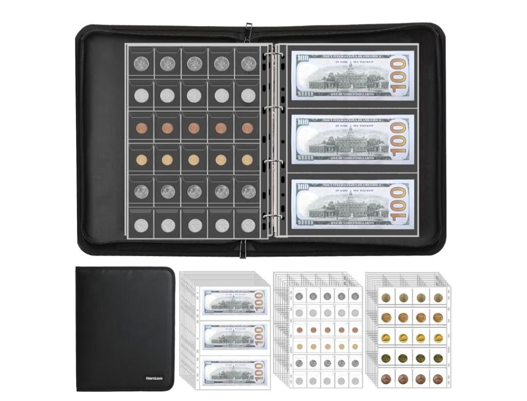 Coin Collection Album Holder for Collectors, 400 Pockets Fireproof Coin Collection Book & 36 Paper Money Organizer Binder for Coin Currency Collection Supplies,Pennies,Bill,Tokens,Badges